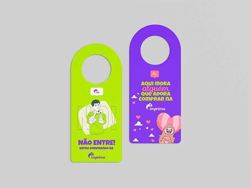 Usar o aviso de porta como um material personalizado, com o nome do cliente, uma frase especial ou visual da campanha, pode transformar o produto em um item afetivo.
