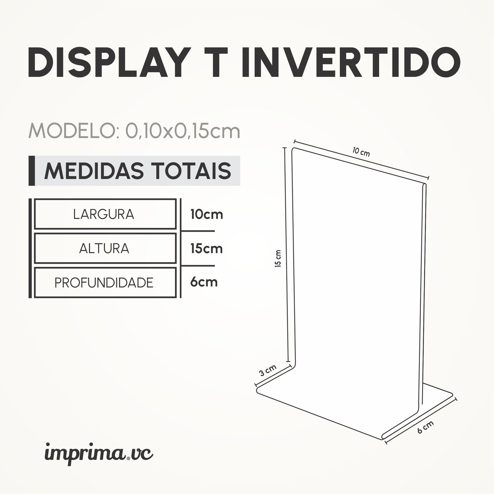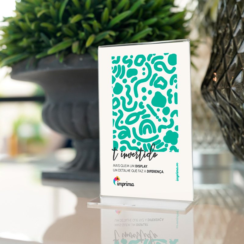 O Display em T acrílico é utilizado em mesas ou balcões no formato de T invertido e é a forma mais simples e eficiente de divulgação de conteúdo, informativos, cardápios, avisos, promoções, comunicação interna da empresa, entre outros. Além de proteger o informativo na exposição, a substituição do papel é feita de forma extremamente fácil.